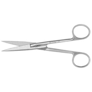 Empleadas para recortar tejido o cortar suturas. Fabricadas en acero inox. de grado quirurgico. Los modelos Super Cut son tijeras con corte de alta precision y suave manejo. Son facilmente reconocibles por tener un lado dorado..12cm, rectas.